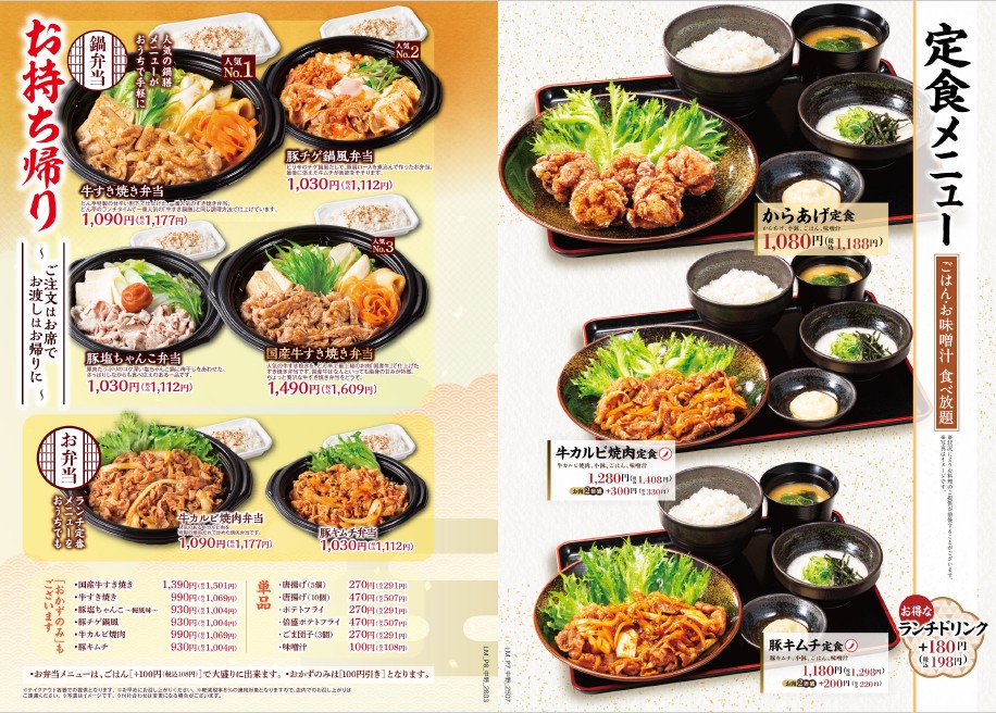 【店舗別】中野店ランチメニュー